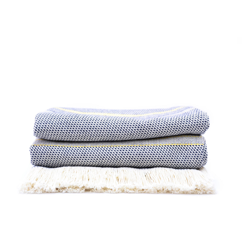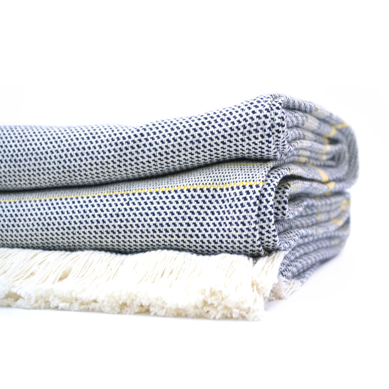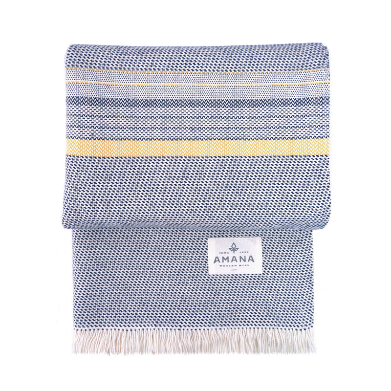 The Amana Picnic Blanket is a substantial weight cotton– the perfect choice for a day of sand and surf, a picnic in the park, or a cozy evening on the couch. With its soft fringe, and lovely striped broken twill pattern, this 100% cotton blanket will bring comfort wherever you take it.